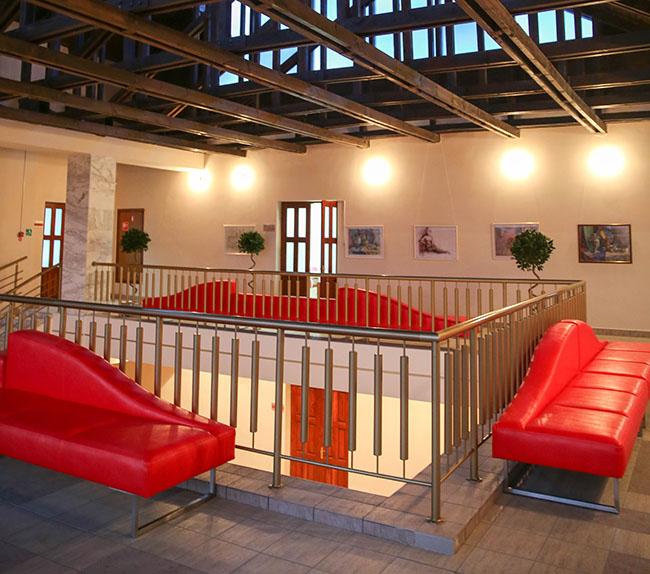 – Чтобы студентам было комфортно «обживаться» в новом доме, мы продумали зоны социализации, где можно отдохнуть, пообщаться, назначить встречу. В учебно-лабораторном корпусе работает кофейня на 20 мест, повсеместно в здании установлены кофе-автоматы. Стены корпусов украшают репродукции известных полотен.