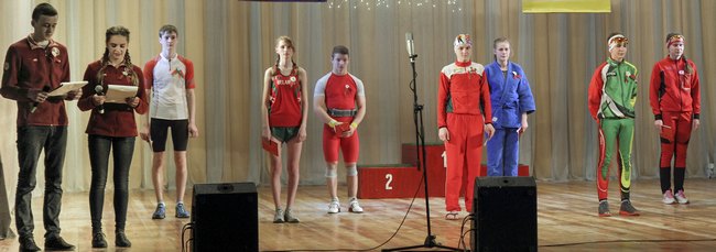 Завершали программу учащиеся УО «Новополоцкое государственное училище олимпийского резерва». «Коварные» спортсмены припасли на финал выступления безоговорочный козырь: когда на сцену вышла биатлонистка Анна Соло, зал ликовал.