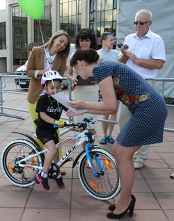 Старт мероприятиям дал традиционный велопробег, организованный отделом образования, спорта и туризма. Дети, молодежь, взрослые и даже горожане преклонного возраста с удовольствием приняли участие в массовом катании от 8-го микрорайона до площади Строителей. IMG_2786С приветственным словом к прибывшей вело-колонне обратилась начальник отдела идеологической работы, культуры и по делам молодежи Наталия Марченко. Она поздравила всех с этим прекрасным днем, вручив дипломы и сладкие призы самым оригинальным представителям молодежного велокросса–2015. Завершился спортивный марафон запуском в небо нескольких десятков белых, красных и зеленых воздушных шаров.