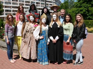 Чтобы праздник запомнился надолго, организаторы предусмотрели отдых на любой вкус. В кинотеатре «Минск» на акцию «Спецкиносеанс» молодые люди до 31 года могли посмотреть любой фильм с приличной скидкой. А на выставки музея истории и культуры города вход для них и вовсе был бесплатным. Арт-площадкой стал городской ботанический сад, где можно было не только полюбоваться на цветущие растения, но и насладиться выставкой картин из фондов детской художественной школы им.И.Ф.Хруцкого «Новополоцк узнаваемый», посмотреть фото-растяжку открыток разных лет. Но, пожалуй, самым интригующим зрелищем стал перфоманс «Ожившие скульптуры». В различных частях сада гуляли и охотно фотографировались со всеми желающими загримированные персонажи, символизирующие различные человеческие качества: скромность, доброта, щедрость и т.д.IMG_2914 Формат данного действа – инициатива устроителя уличных пантомим Глеба Камынина. Молодой человек уже не первый год организует подобные мероприятия в г.Минске. В День молодежи он решил сделать подарок и Новополоцку, перенеся подобный проект на улицы родного для него города.
