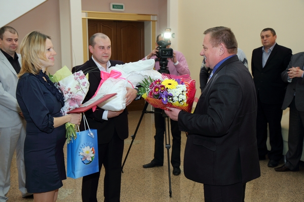 28 октября маленькая Ксения была официально зарегистрирована в отделе ЗАГС. Поздравить Марину и Виталия, вручить им свидетельство о рождении ребенка пришел председатель горисполкома Дмитрий Демидов. «Я убежден, что в жизни семьи нет важнее события, чем появление на свет ребенка, – отметил он. – В нашем городе делается все, чтобы рождалось как можно больше детей. Положительная динамика последних лет показывает, что мы двигаемся в правильном направлении. Желаю вам воспитать достойного человека, который станет гордостью своих родителей, будет настоящим патриотом нашей Родины – Республики Беларусь».
