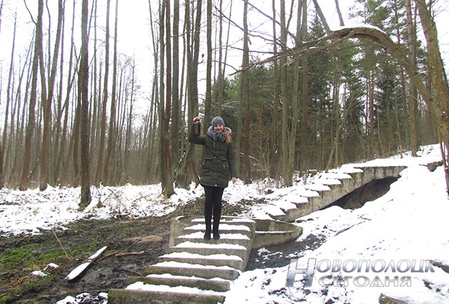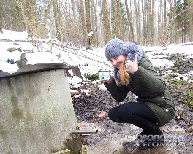 Увидеть местную достопримечательность решила и корреспондент «НС». На автобусе из Новополоцка доехала до д.Азино. Оттуда своим ходом в д.Тиновку, в конце которой есть высокая гора. С нее крутой пеший спуск, который, словно природная винтовая лестница, ведет прямо к роднику.
