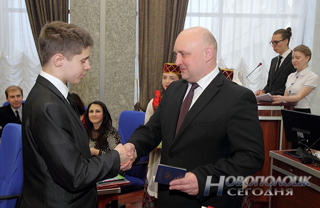 В конференц-зале Новополоцкого горисполкома лучшим школьникам вручили паспорта