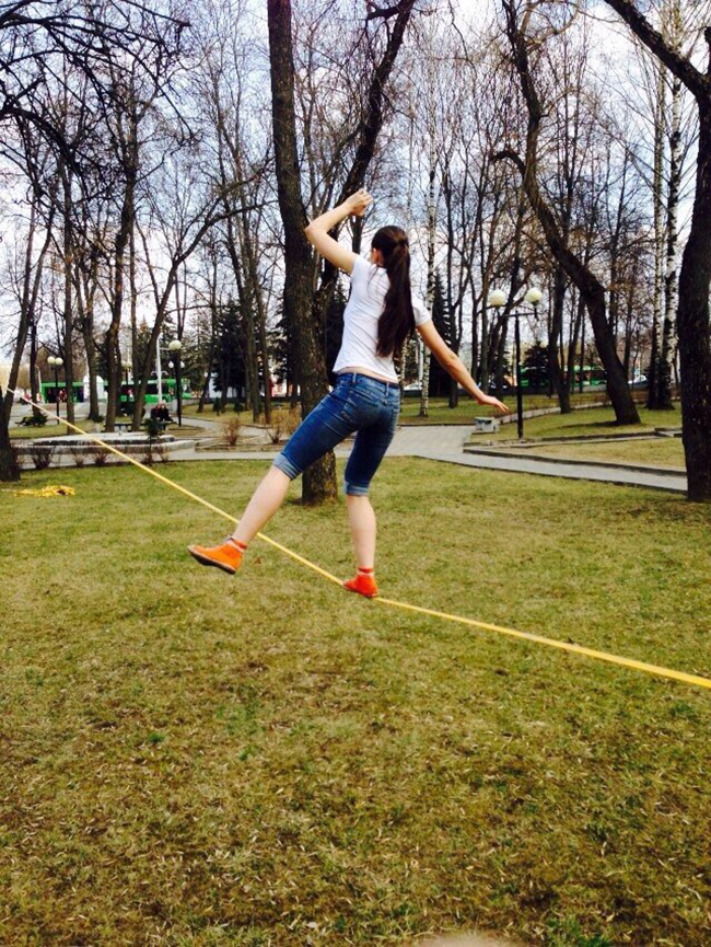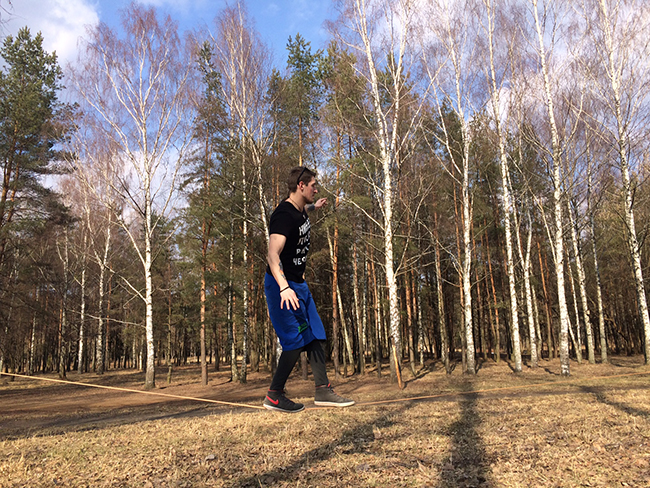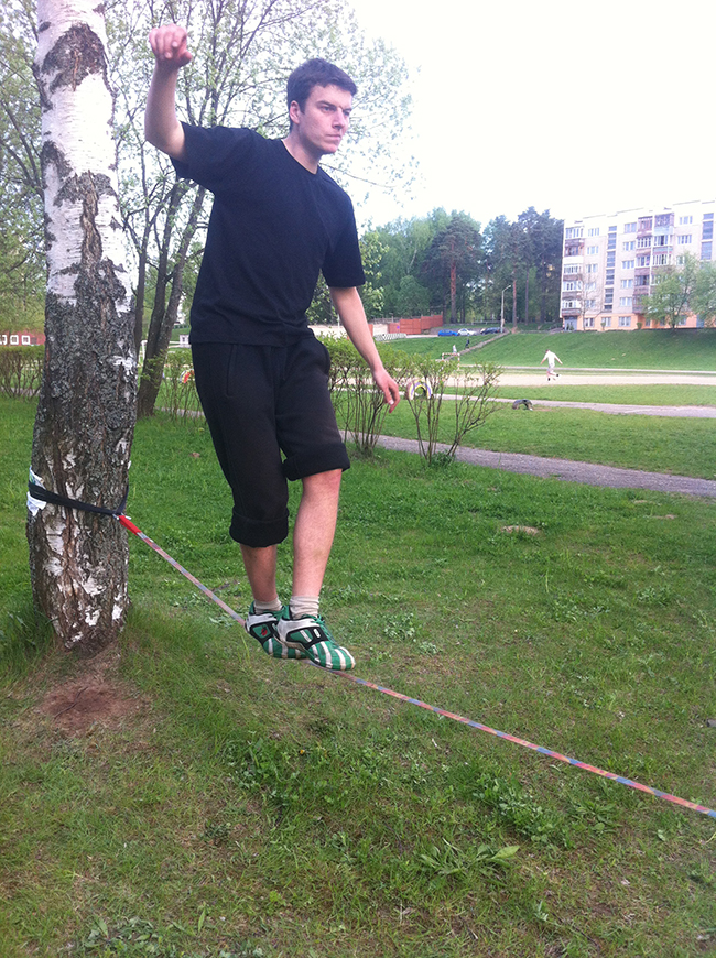 «А что это вы тут делаете? Готовитесь в поход по горным вершинам или в цирковое училище поступать собрались?» – засыпала я вопросами случайного знакомого. Парень в ответ заулыбался и пояснил, что его занятие называется «слэклайн». «Это такой вид спорта и активного отдыха. С каждым годом он становится все популярнее. Людей привлекает его кажущаяся простота. Однако балансировать на стропе не так просто. Я сам еще только начинаю. Пробую. Учусь. В Новополоцке слэклайн появился совсем недавно. Например, я о нем узнал от подруги Нонны. Вот и решил проверить свои силы», – пояснил Евгений (так звали встретившегося мне юношу).