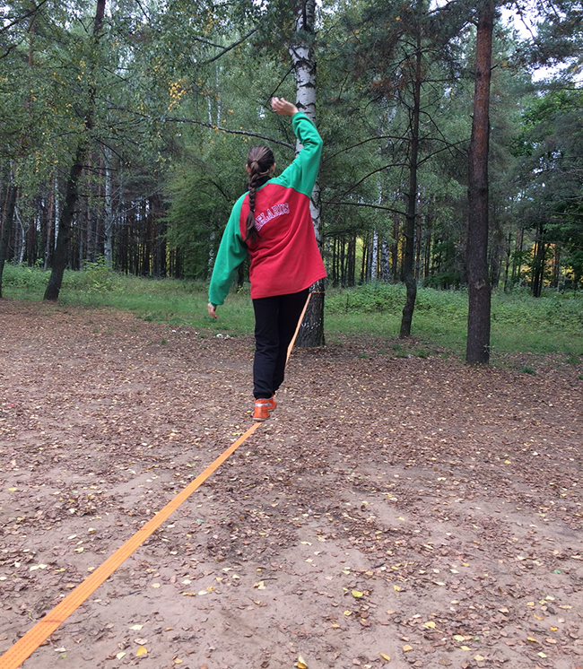 Немного «порывшись» в интернете, я узнала, что слэклайном называют уличный вид спорта, который предполагает хождение по стропе – специальной нейлоновой или полиэстеровой веревке, натянутой между стационарными объектами.
