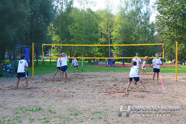 Если на приобретение и установку тренажерного комплекса новополочане собирали деньги в рамках городской акции, то площадка для пляжного волейбола обошлась горожанам абсолютно бесплатно. В день открытия «тренажерки», 11 июня, директор минской фирмы «Альфаспорт», которая занималась производством спортивного оборудования, преподнес Новополоцку и его жителям подарочный сертификат на обустройство площадки. Начались работы, которые завершились к началу учебного года. Теперь любой желающий может собрать команду, прийти в парк культуры и отдыха и поиграть в волейбол. Здесь же предлагают взять мяч напрокат.