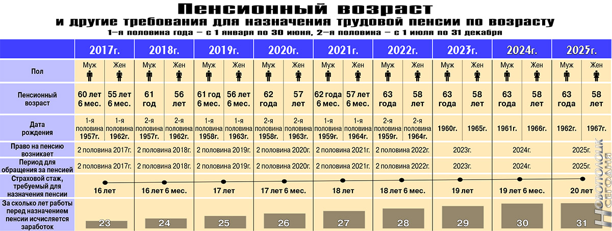 В каком возрасте выйдем на пенсию? (+таблица)