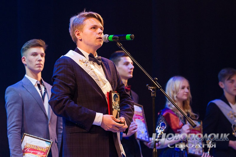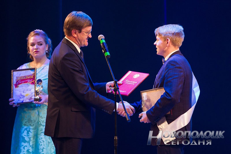 Из рук председателя Новополоцкого горисполкома Дмитрия Демидова 45 выпускников получили золотые и 4 — серебряные медали.
