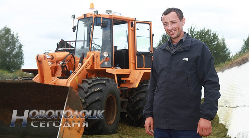 Молодой механизатор Андрей Николаев работает на универсальном погрузчике «Амкодор», который был приобретен с помощью ОАО «Нафтан». В его обязанности входит трамбовка сенажа.