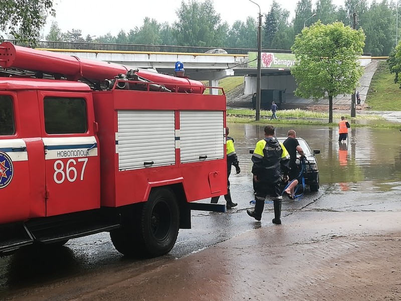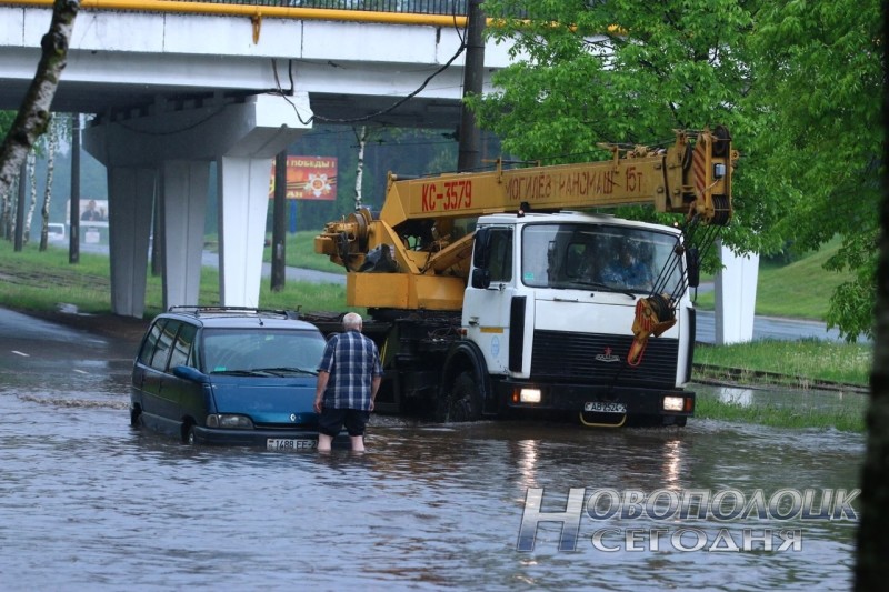 Ливневая система города не справилась с обилием осадков. В центральной части Новополоцка движение оказалось практически парализовано. Транспортные потоки перераспределяли по улицам менее заполненным водой. В некоторых случаях водителям потребовалась помощь МЧС.