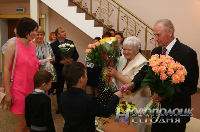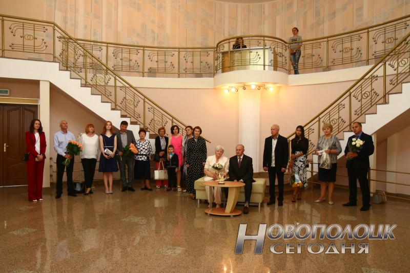 На днях в Новополоцком ЗАГСе состоялась торжественная регистрация золотой свадьбы, а виновниками торжества стали Владимир Кондратьевич и Ольга Тимофеевна Карпинчики. Это золотой юбилей дружной, сплоченной, счастливой семьи, приносящей радость и тепло тем, кто ее составляет и кто с нею соприкасается. В этот радостный день здесь собрались самые близкие юбилярам люди, а также представители родного предприятия ОАО «Нафтан», чтобы тепло и сердечно поздравить их со столь знаменательной датой.