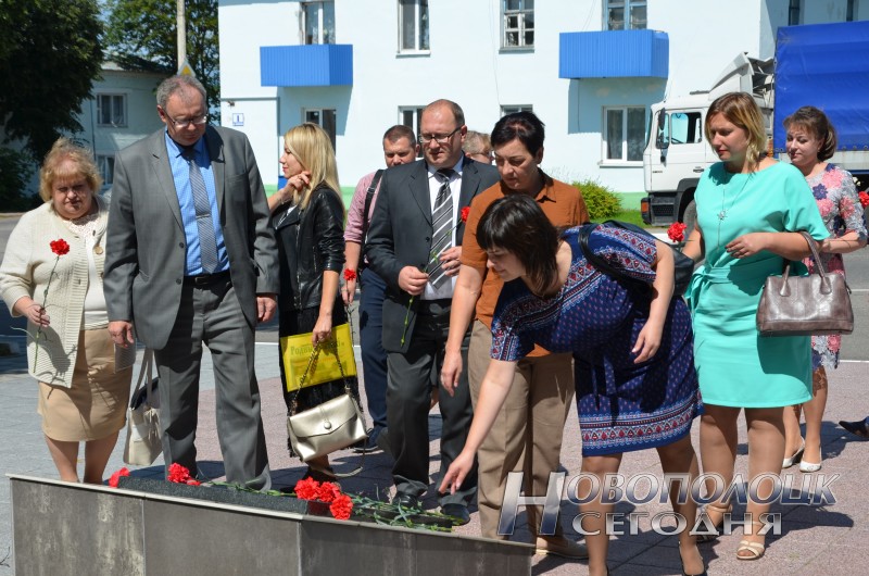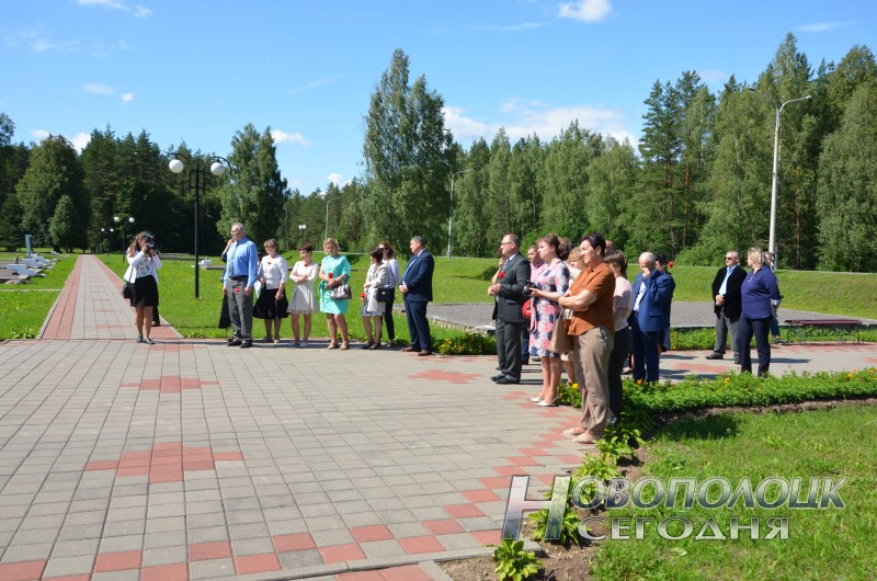 Обзорная экскурсия по районному центру с быстрой остановкой у зданий докшицкой редакции и центра детей и молодежи. Подарки от центра. Участники летучки поклонились подвигу Героя Советского Союза летчика Ивана Полевого.