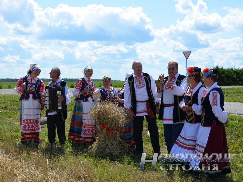 Официальная часть сменилась презентацией жизни района. Обряд «Зажинки». Первый сноп. Освящение колосьев нового урожая и техники. Начало жатвы.