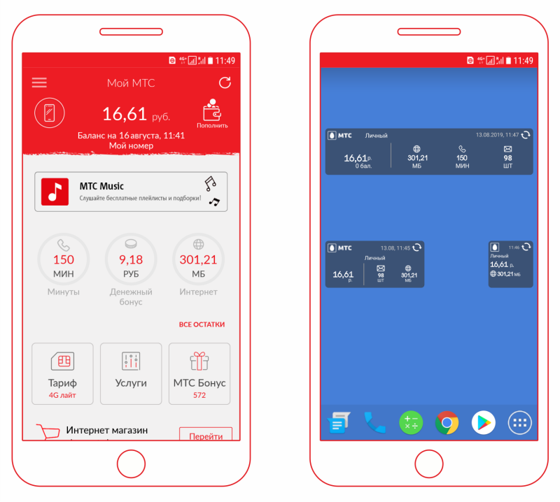 Даже при блокировке номера в «Мой МТС» можно проверить баланс и остатки трафика, зарегистрировать обещанный платеж. Эти же операции можно совершать с номерами родных и близких: приложение позволяет подключать дополнительные номера и полноценно управлять ими. Кроме того, если вынести на экран смартфона виджет приложения, то баланс и оставшийся мобильный трафик всегда будут перед глазами.
