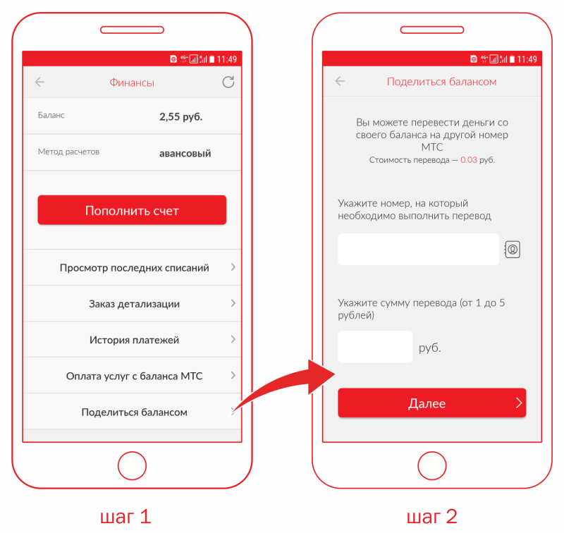 Программа позволяет быстро делиться деньгами со счета с друзьями, близкими или просто пополнять баланс другого номера: достаточно перейти через меню в раздел «Финансы», а потом выбрать «Поделиться балансом».