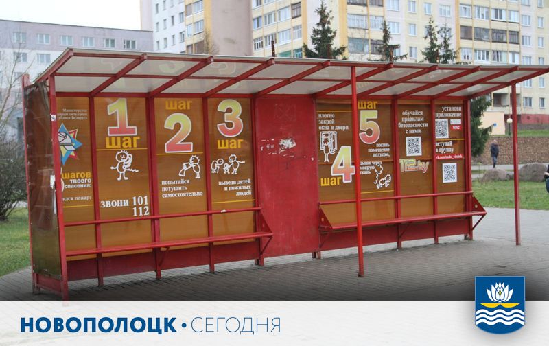 Пять шагов к спасению в случае чрезвычайной ситуации и правила использования огнетушителей жители и гости города теперь смогут освежить в памяти на двух остановочных пунктах общественного транспорта. Они оформлены новополоцким отделом МЧС в сотрудничестве городским архитектурно-производственным бюро.