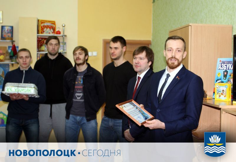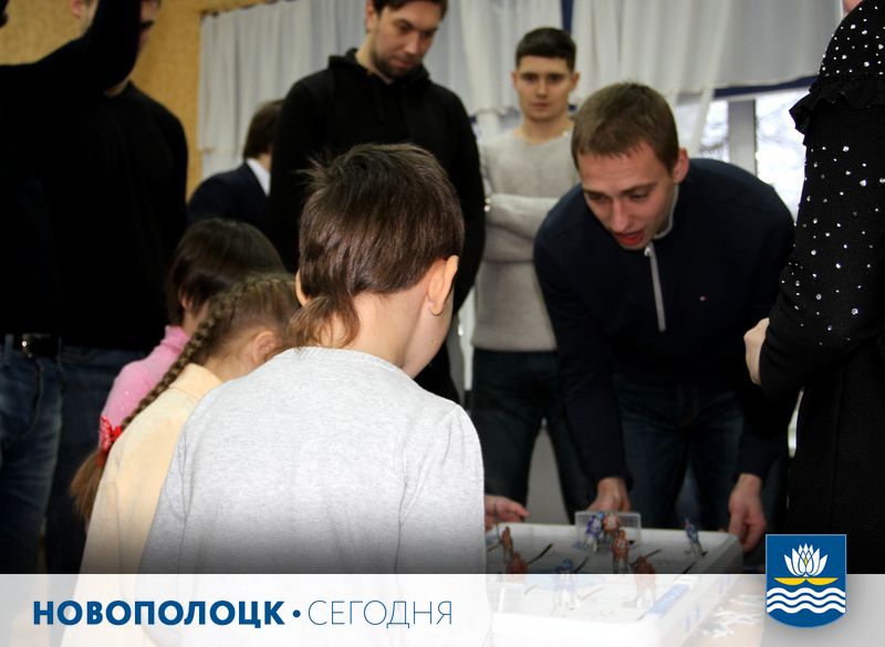 Профессионалы основного состава «Химика» во главе с главным тренером Олегом Хмылем и генеральным директором новополоцкого хоккейного клуба Андреем Ильиным побывали 26 ноября в гостях у воспитанников городского социального приюта. Встреча прошла на позитиве, а короткий «товарищеский» матч по хоккею закончился со счетом 1:1.