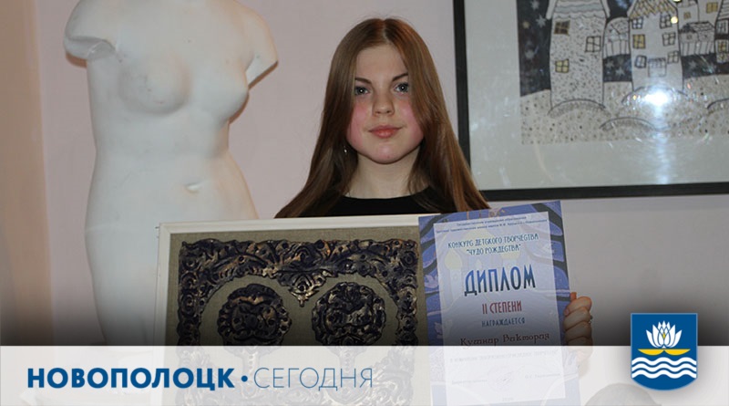 Из года в год юные художники не перестают удивлять своими победами. Накануне открытия новополоцкой выставки в Витебске торжественно наградили победителей конкурса детского творчества «Рождественские мотивы», ежегодно проводимого под эгидой Витебской епархии и Детской школой искусств № 3 г.Витебска «Маладик». На 22-ой по счету конкурс поступило 552 работы из 58 учреждений образования и культуры области. Победителями стало 16 ребят, среди которых есть и новополочане. Диплом первой степени завоевала картина «Рождество – радость для всех» учащейся ДХШ им.И.Ф. Хруцкого, пятилетней Софии Малюшицкой, третьей – «Снежный ангел» 14-летней воспитанницы изостудии «Хамелеон» Дворца детей и молодежи Екатерины Бумаженко. Специальными призами областного конкурса отметили Лилиану Новикову, Наталью Сидорову, Алису Перепечину (ДХШ им.И.Ф. Хруцкого) и Дарью Борблик (изостудия «Хамелеон», ДДМ).