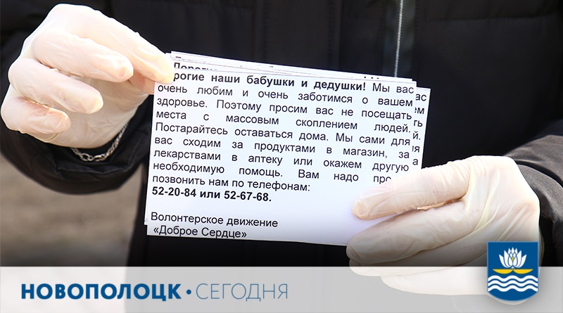 Активисты волонтерского движения «Доброе сердце» Новополоцкой городской организации ОО «Белорусский республиканский союз молодежи» вышли на улицы города с целью проинформировать пожилых горожан о мерах предосторожности в непростой эпидемиологической ситуации.