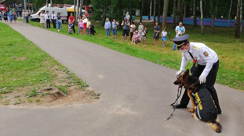 Старшина милиции, милиционер-кинолог роты задержания Виталий Смеховский рассказал о важности участия служебно-розыскных собак в заданиях, после чего овчарка по кличке Онежка продемонстрировала умение выполнять различные команды кинолога, находить предметы по запаху, ловить «преступников».