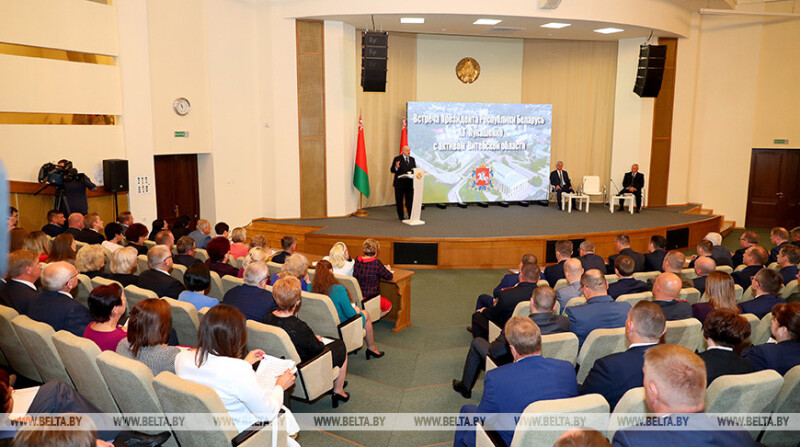 На встрече с активом Витебщины Президент заявил, что ключевой задачей в масштабах Витебской области и страны является развитие регионов. Это будет главным направлением настоящего времени и ближайшего будущего. Он отметил, что в стране есть программы и планы по крупным и малым городам, сельским поселениям, ускоренному развитию городов и районов с населением около 80 тыс. человек. Президент обратил внимание, что обозначены все направления регионального развития, начиная от неперспективных деревень, хуторов, агрогородков, до районных и областных центров. Надо сделать так, чтобы люди чувствовали себя в любом населенном пункте страны так же комфортно, как в Минске. Для этого необходимо создавать рабочие места с достойной заработной платой, чтобы молодежь возвращалась после учебы в родные города, развивать перспективные виды деятельности.