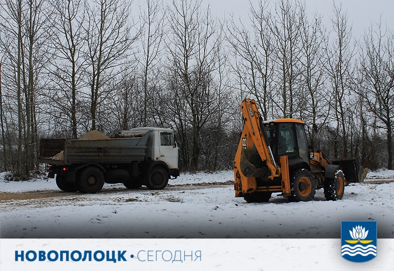 Дорожная техника на фоне снега – картина необычная. Как пояснил старший мастер участка благоустройства городских объектов Новополоцкой спецавтобазы Виктор Коледа, работе это не мешает. Сначала убрали снег, выровняли поверхность с помощью грейдера – это необходимый этап перед насыпкой щебня. А затем с помощью асфальтоукладчика «выложили контур» толщиной 8 см мелкими камешками – на протяжении всей велодорожки. На это потребовалось 283 тонны щебня.