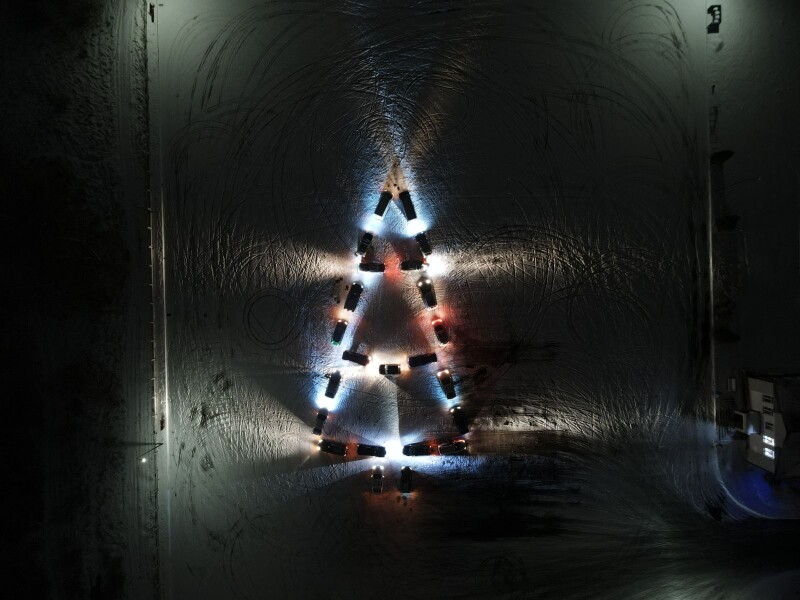 Несмотря на то, что на улице было достаточно холодно, осуществить идею все же удалось. Для ее реализации понадобилось всего 23 машины и креативный подход. Обсудили план действий, разъехались по позициям и отрепетировали, в какой последовательности будут загораться огни новогодней ели. А Дед Мороз и Снегурочка подбадривали и заряжали зрителей яркими эмоциями.