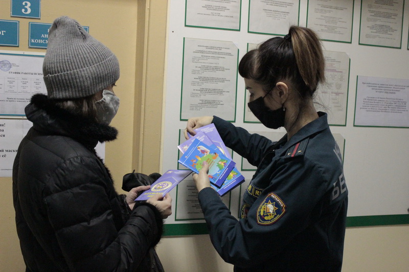 Работу обучающей площадки сотрудники Новополоцкого ГОСЧ организовали в психоневрологическом диспансере Новополоцкой горбольницы. Посетителям учреждения напомнили основные правила безопасности.