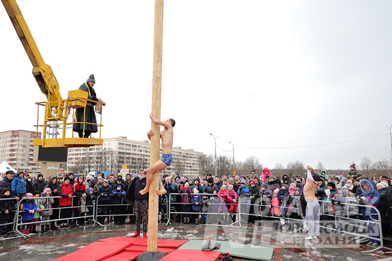 Большое число желающих собрала народная забава – покорение «ледяного столба». Столб хоть и не был ледяным, зато начесан так, что удержаться могли только по-настоящему ловкие ребята. И, надо сказать, достойные призы, предоставленные предприятиями города, порадовали смельчаков. К примеру, юноша по имени Никита выиграл электрический чайник. В этом деле он не новичок – столб «берет» ежегодно. Начал еще в шесть лет. Собрал целую коллекцию различных трофеев. Что-то оставляет себе, а что-то дарит любимой девушке. А вот по-настоящему оригинальные подарки в этом году достались Илье Соблакову и Илье Кожевникову. Первый унес домой живого петушка, а второй – упитанного хрюшу, которые предоставило ОАО «Кушлики». Попробовать свои силы наравне с парнями решилась и девушка. Конечно, до вершины столба она не добралась, но за смелость также была отмечена призом. В интервью корреспонденту «НС» Анна Коретникова (так зовут отважную девушку) призналась, что недооценила народную забаву: «Каждый год наблюдаю, как парни легко берут этот столб, но не решалась попробовать. В этот раз, думаю, была не была… Оказалось, это действительно очень сложно!»