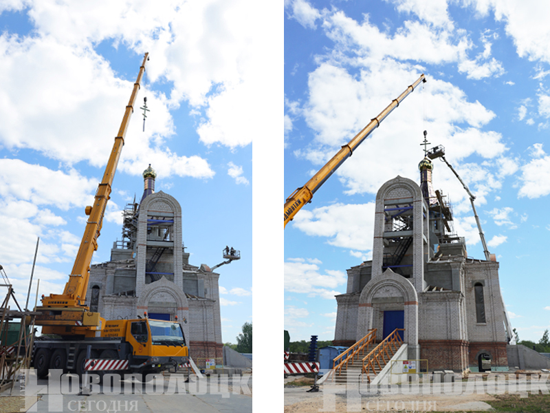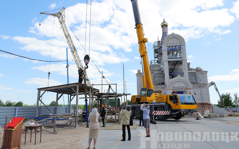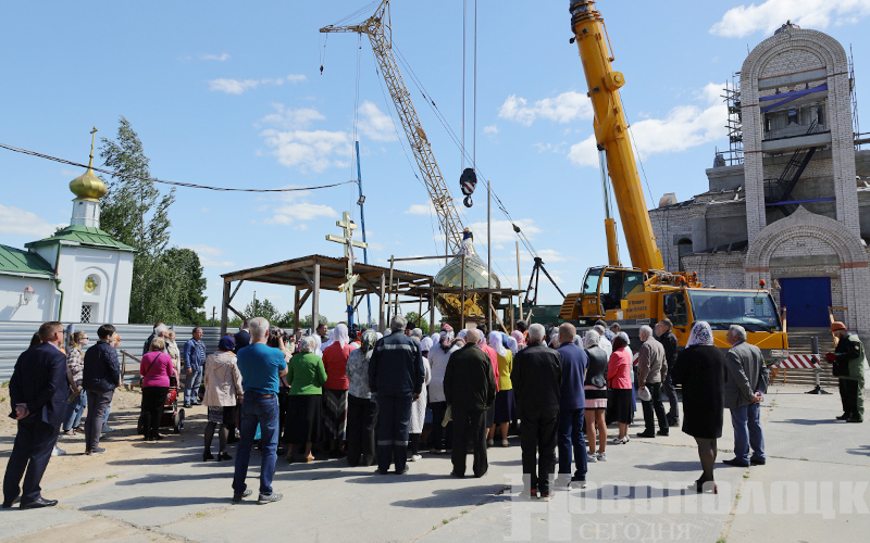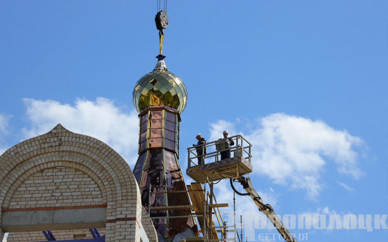 В Новополоцке состоялось историческое событие: на строящийся Духовно-просветительский центр установили купол и крест (+фоторепортаж)