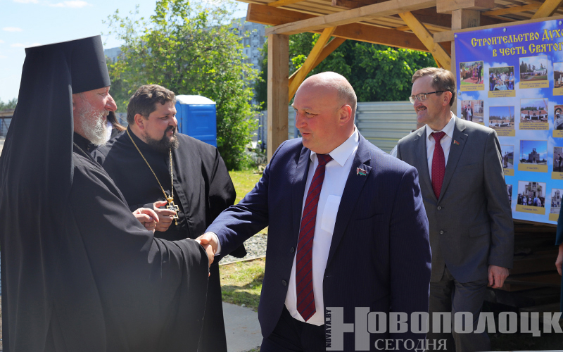 – Отрадно, что это знаменательное событие выпало на один из светлых Пасхальных дней, – обратился к присутствующим правящий архиерей Полоцкой епархии. – Купол – это символ нашей свечи. Свеча – символ нашей жертвы, следствия нашей любви. И каждый, взирающий на купол храма, всегда будет вспоминать о той жертвенной любви, которую Господь проявил по отношению к каждому из нас. Да поможет Господь всем нам: градоначальникам, благотворителям, по-печителям, строителям, жертвователям! Чтобы мы поскорее закончили строительство этого храма и радовались бы общей молитве в нем. А также тому, что этот Духовный центр будет являться местом посещения для многих новополочан и гостей нашего города, станет украшением Новополоцка.