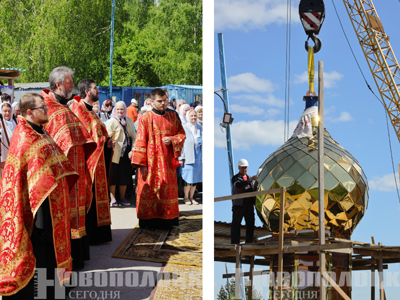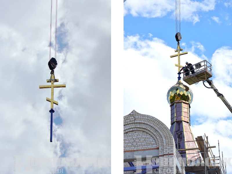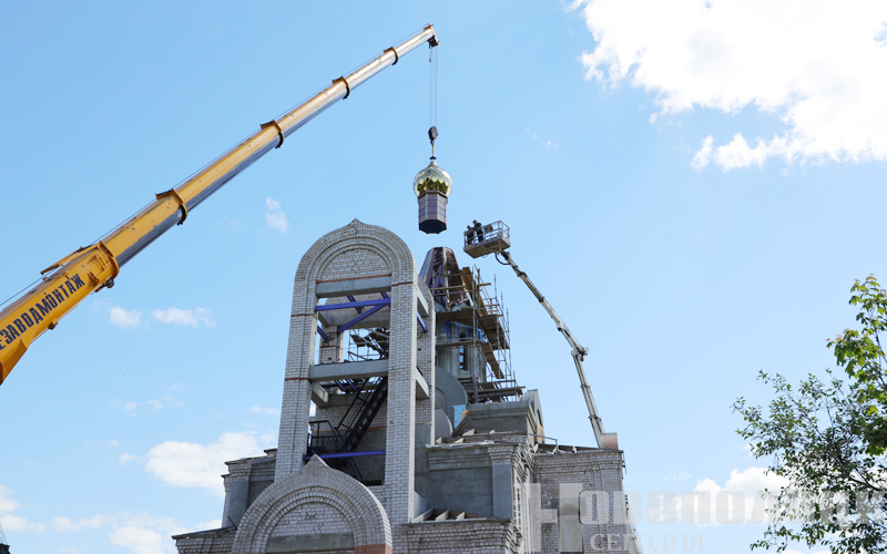И вот с помощью крановой установки под восторженные взгляды горожан огромный купол весом 2,5 тонны медленно поднялся вверх. На высоте, сравнимой с 9-этажным домом, золотистую конструкцию встречали и закрепляли на барабане строители, находящиеся на подъемнике. Увенчал купол большой крест, который также перенесли на вершину здания грузовым крюком. Храм сразу же преобразился, приобрел подобающий величественный вид. Завершилась непростая, можно сказать, ювелирная работа бригады монтажников громкими аплодисментами, у многих верующих на глазах выступили слезы: момент для них долгожданный, волнительный.