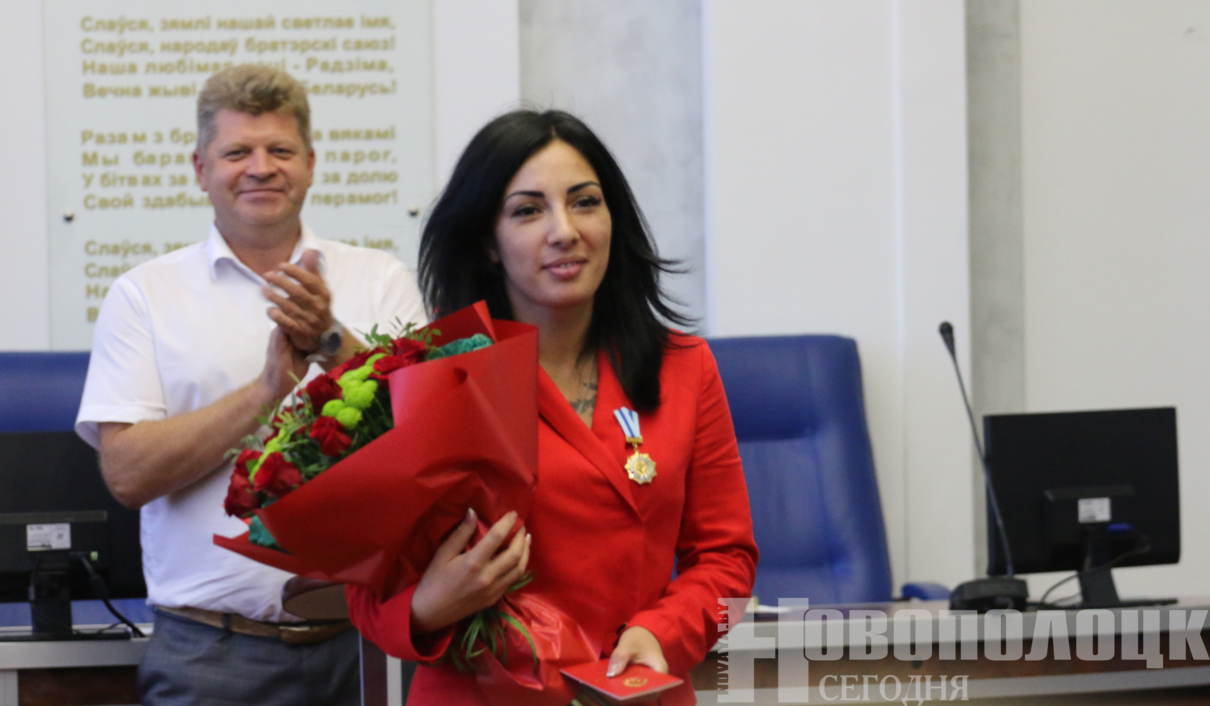 Почетную награду многодетной матери под бурные аплодисменты собравшихся в конференц-зале исполкома 16 августа, вручил первый заместитель председателя Новополоцкого горисполкома Сергей Семёнычев.