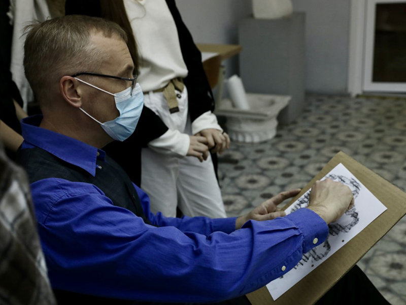 Другі майстар-клас – «Займальны накід» – са старэйшым выкладчыкам кафедры Андрэем Піскуном быў накіраваны на працу з графікай і пластычнасцю ліній, тонам, кампаноўкай і фактурай, матэрыяльнасцю ў маляванні з натуры.