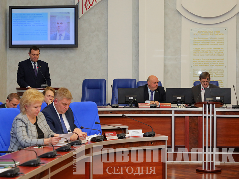 Далее депутаты рассмотрели вопросы деятельности общественных организаций, зарегистрированных на территории Новополоцка, и реализации этноконфессиональной политики. Начальник отдела идеологической работы, культуры и по делам молодежи горисполкома Николай Романовский сообщил, что в городе находится 11 религиозных общин: 4 православных, 1 католическая и 6 протестантских. Взаимоотношения с ними выстраиваются в русле оказания содействия в решении социально значимых вопросов, развития сотрудничества в условиях сложной эпидемиологической ситуации.