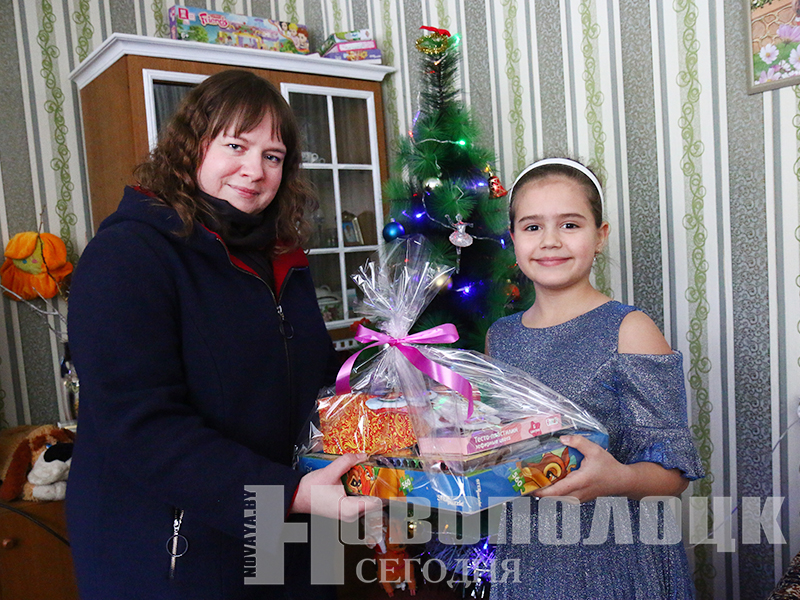 Активное участие в благотворительной акции приняла городская газета «Новополоцк сегодня». В минувший вторник члены профсоюзной первички учреждения во главе с главным редактором «НС» Екатериной Войшнарович посетили юную Софию Толопило. Девочке 9 лет, она учится в СШ №3, растет любознательной, творческой. К приезду гостей подготовилась – встречала в красивом новогоднем платье. Екатерина Викторовна поздравила Соню с наступающим Новым голом и вручила ей сладкий подарок, наборы для лепки и рисования, пазлы.