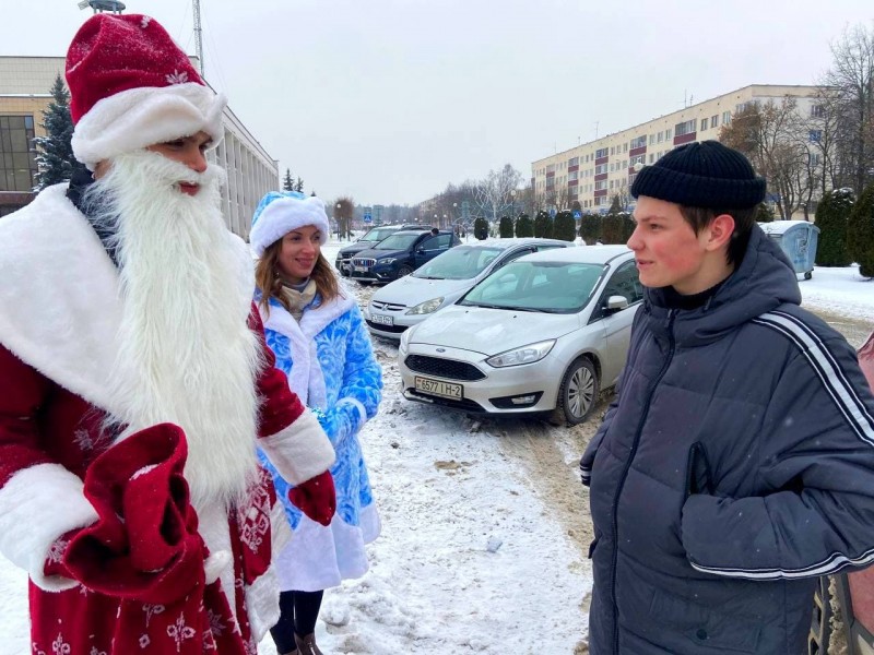 Инициаторы необычной акции отправились в самое людное место – на площадь Строителей. Активисты из числа учащихся политехнического колледжа напомнили горожанам о правилах безопасности на дорогах и открытых водоемах, пользования тюбингами в холодное время года. Наглядную информацию раздали сотрудники ГОВД. Приятным дополнением стали сладкие подарки, которыми ребята одаривали случайных прохожих.