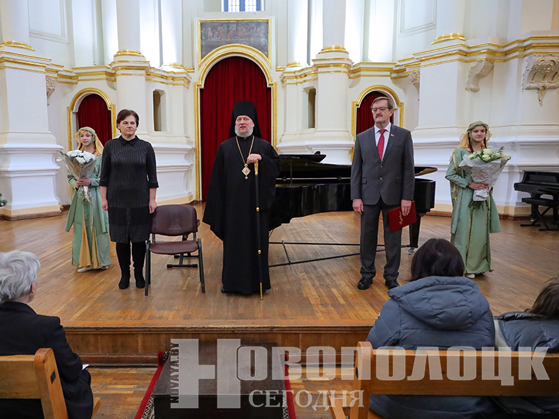 Со сцены концертного зала камерной и органной музыки в древнем соборе свои поздравления горожанам адресовали епископ Полоцкий и Глубокский Игнатий, председатель Новополоцкого горсовета депутатов Олег Буевич и заместитель председателя Полоцкого райисполкома Светлана Валюшкина.