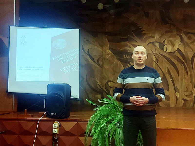 Главной темой встречи стало обсуждение изменений и дополнений в Конституцию Республики Беларусь. Перед собравшимися выступили преподаватели кафедры конституционного права юридического факультета ПГУ Сергей Глазырин и Андрей Валевко. Первым выступил Сергей Евгеньевич, который акцентировал внимание родителей учащихся гимназии №1 на важности участия в референдуме. Андрей Викторович прокомментировал нововедения в Основной Закон страны с точки зрения юриста: