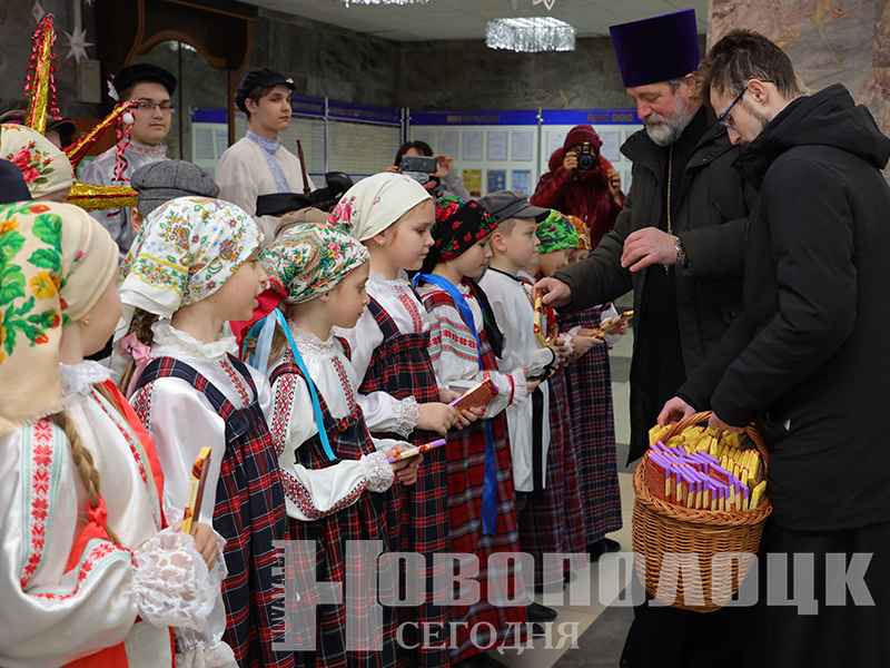 Веселыми колядными песнями под аккомпанемент народных инструментов гостей встречали юные артисты фольклорного коллектива «Ажыначкі» Дворца детей и молодежи.