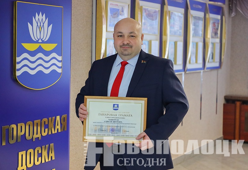 Руководитель государственного учреждения «Центр по обеспечению деятельности бюджетных организаций г. Новополоцка», депутат горсовета Алексей Чапковский награжден Почетной грамотой Новополоцкого городского совета депутатов «За добрасумленную працу ў органах дзяржаўнага самакіравання і актыўны ўдзел у грамадскім жыцці».