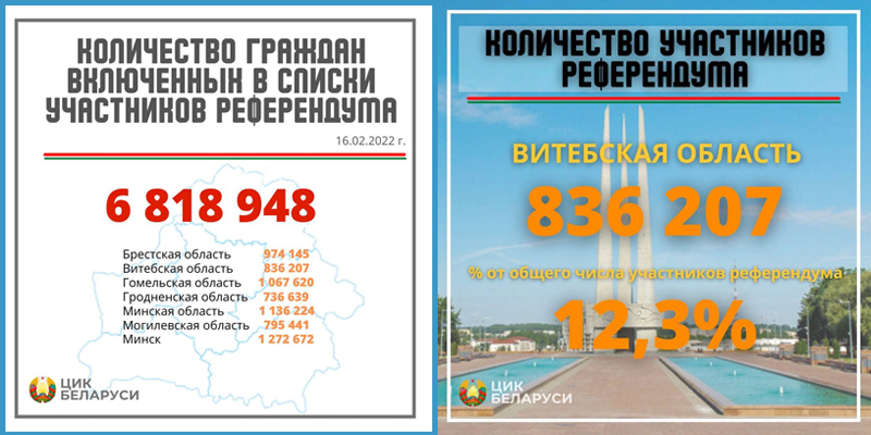 Более 6,8 млн граждан включены в списки для голосования на республиканском референдуме, в Витебской области — 836 207 человек.