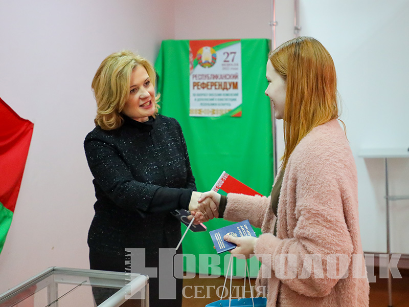 Председатель городского Совета депутатов Олег Буевич, приветствуя девушку, сказал: «Вы же тоже наш коллега – парламентарий. Искренне поздравляю с тем, что вы пришли и проголосовали за будущее нашей страны».