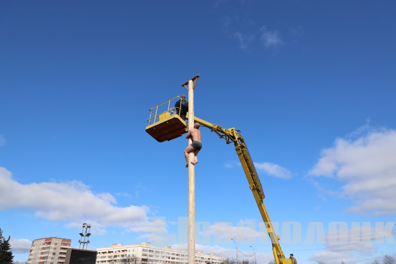 «Масленичный призовой столб» – один из любимых конкурсов у горожан. Один из подарков, в честь предстоящего юбилея нашей газеты, предоставила редакция «Новополоцк сегодня». Забраться по гладкой и холодной поверхности достаточно сложно, но каждый раз находятся смельчаки, которые с большим азартом совершают подъем. Для этого существует особая техника. У них была хорошо отработанная методика: рывок вверх они делали руками, а держались на столбе при помощи ног.