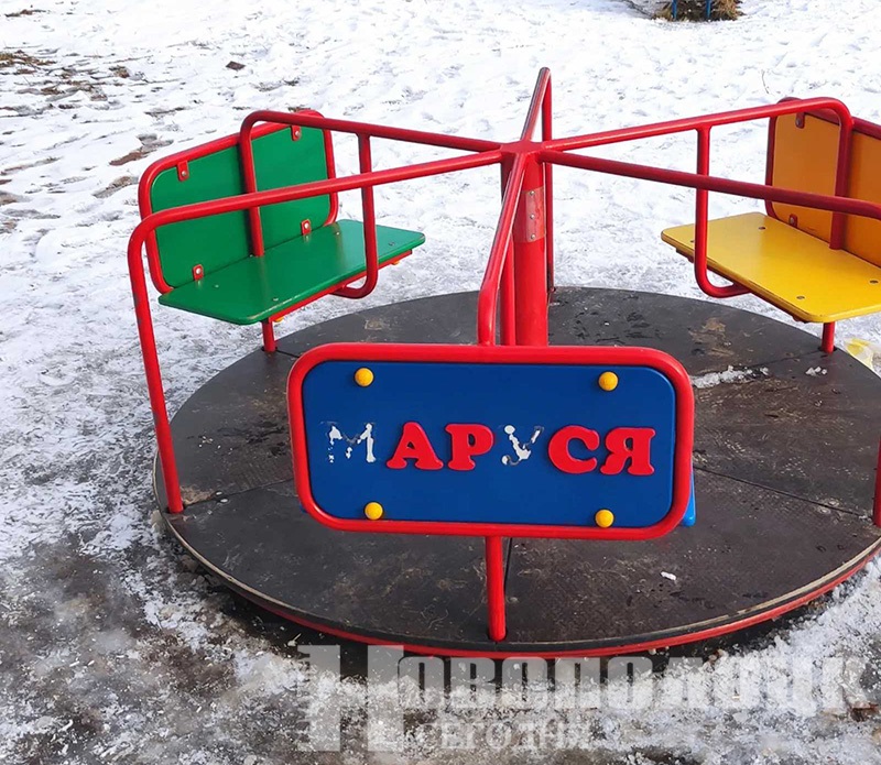 Игорь Медведский обнаружил факт вандализма сам – 8 марта шел мимо детской площадки и увидел, что с двух разных сторон от названия карусели оторваны буквы.
