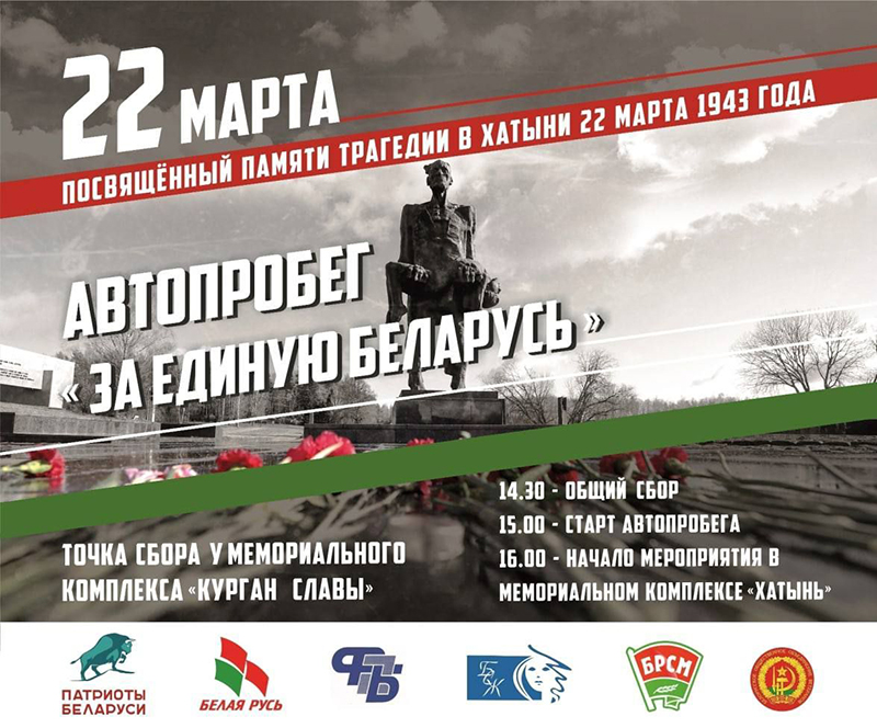 22 марта состоится масштабный республиканский автопробег «За Единую Беларусь», посвящённый дню памяти Хатынской трагедии.