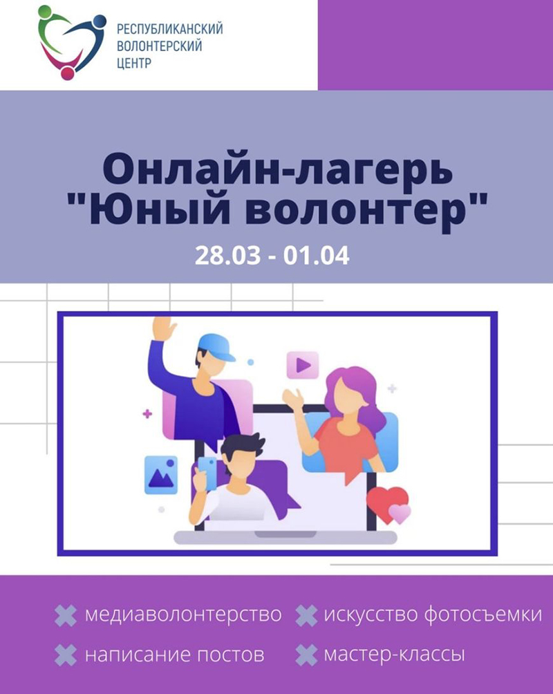 Республиканский волонтерский центр объявляет о запуске онлайн-лагеря для школьников «Юный волонтер». Такая информация размещена в Telegram-канале Министерства образования.