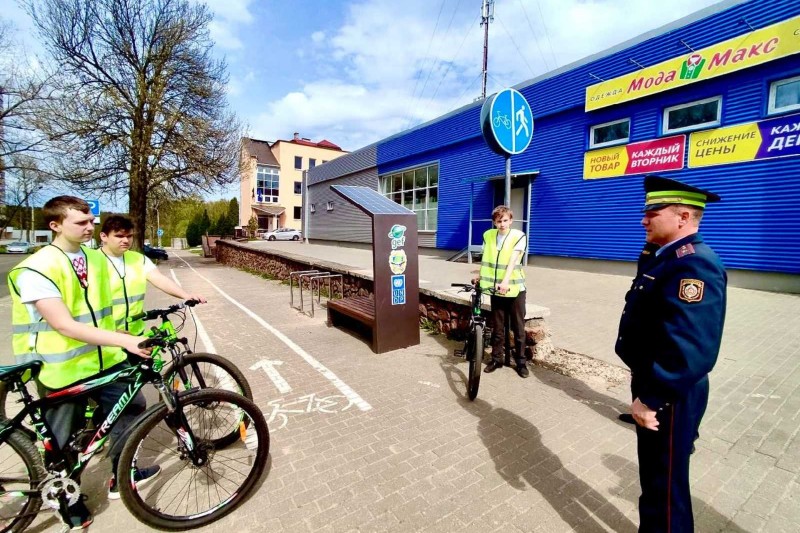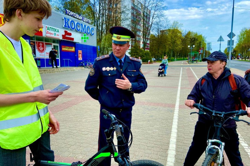 Молодежные отряды охраны правопорядка и сотрудники ГАИ провели челледж по безопасной мобильности велосипедистов в Новополоцке