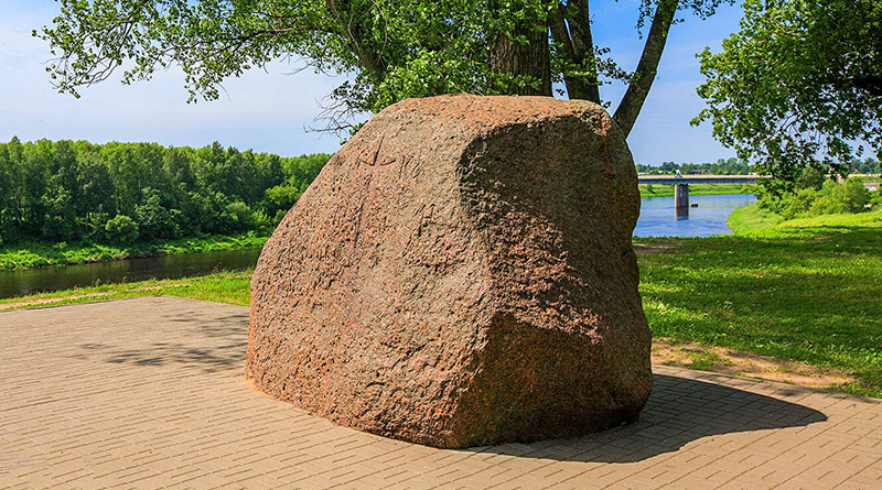 Огромный валун с выбитой надписью «Господи, помоги рабу своему Борису» в 1981 году подняли со дна Двины рядом с деревней Подкастельцы – это территория современного Новополоцка.