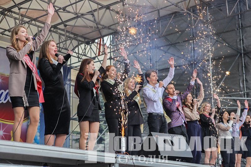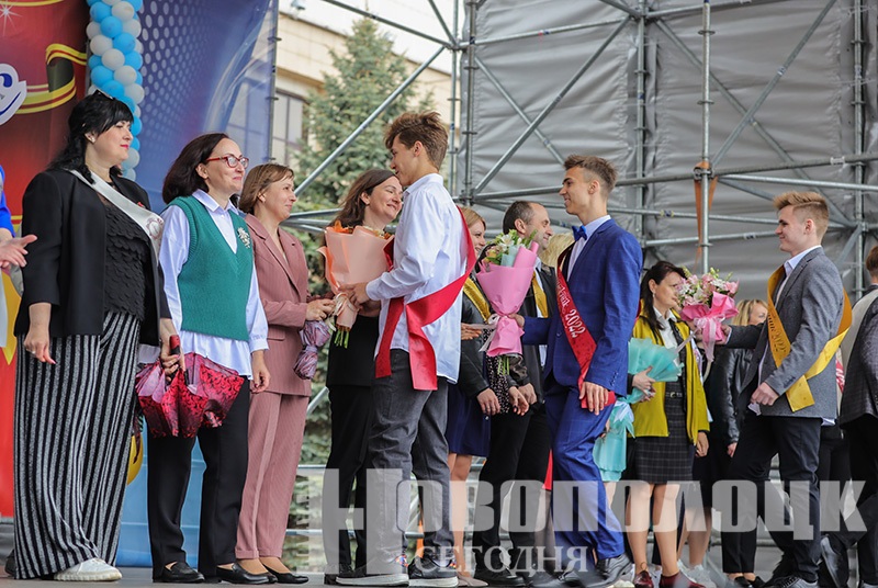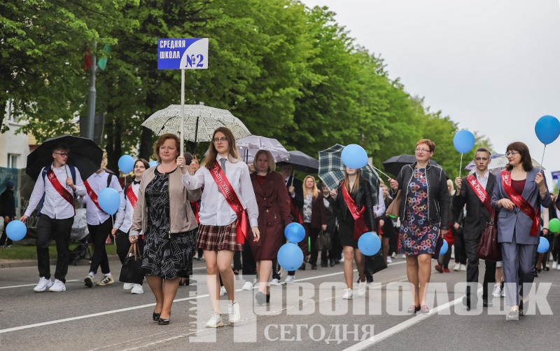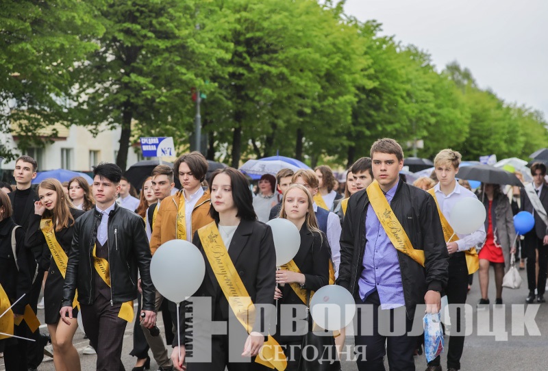 Праздничное шествие выпускников-2022 по главной улице Новополоцка и торжественная линейка на площади. Фоторепортаж